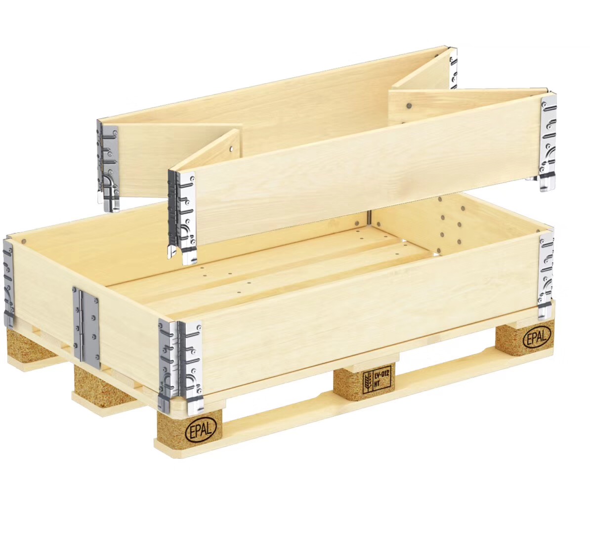 圍板箱側板用木板應四面創(chuàng)光,無毛刺。木板所用鋸材的材質指標允許限度可參考GB/T153-1995選為一等,即活節(jié)與死節(jié)最大尺寸不得超過材寬的25%,任意材長lm范圍內個數(shù)不得超過6個;腐朽面積不得超過所在材面面積的2%;裂紋夾皮長度不得超過材長的10%;蟲眼任意材長1m范圍內的個數(shù)不得超過4個;鈍棱最嚴重缺角尺寸不得超過材寬的20%;彎曲橫彎最大拱高不得超過水平長的0.5%,順彎最大拱高不得超過水平長的2%;斜紋傾斜程度不得超過10%。側板可以用兩塊木板槽梅拼接,但離縫應小于0.5mm。